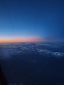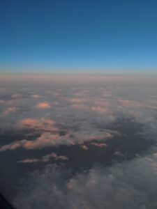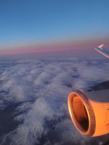 Spre bucuria si satisfactia mea personala, atmosfera a fost extrem de limpede, cerul senin deasupra paturii de nor ce se asternea pufoasa sub noi, dandu-ne ocazia ca, undeva spre coasta libaneza, sa ne putem bucura de un rasarit de soare superb, cu un joc de lumini si culori ce bucurau inima si sufletul . Pacat ca multi dintre pasageri au incercat sa recupereze din orele de somn pierdute si nu au savurat maretia si amplitudinea luminilor rasaritului. Am reusit sa surprind cateva imagini foto, pe care vi le ofer anexate, ca sa savurati macar virtual frumusetea aparitiei zorilor si a zilei pline ulterior. Cand am inceput coborarea, la invitatia CEO Ian Matt DAVID, am avut enorma bucurie si placere de a fi invitat in cockpit, ca sa asist live la aterizarea pe pista aeroportului de destinatie.
